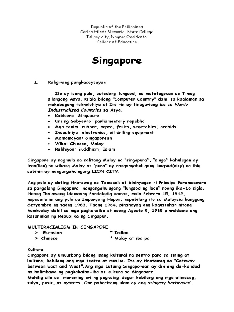 Pagkakaiba Ng Kultura Ng Pilipinas At Singapore Sa Maikling Kwento