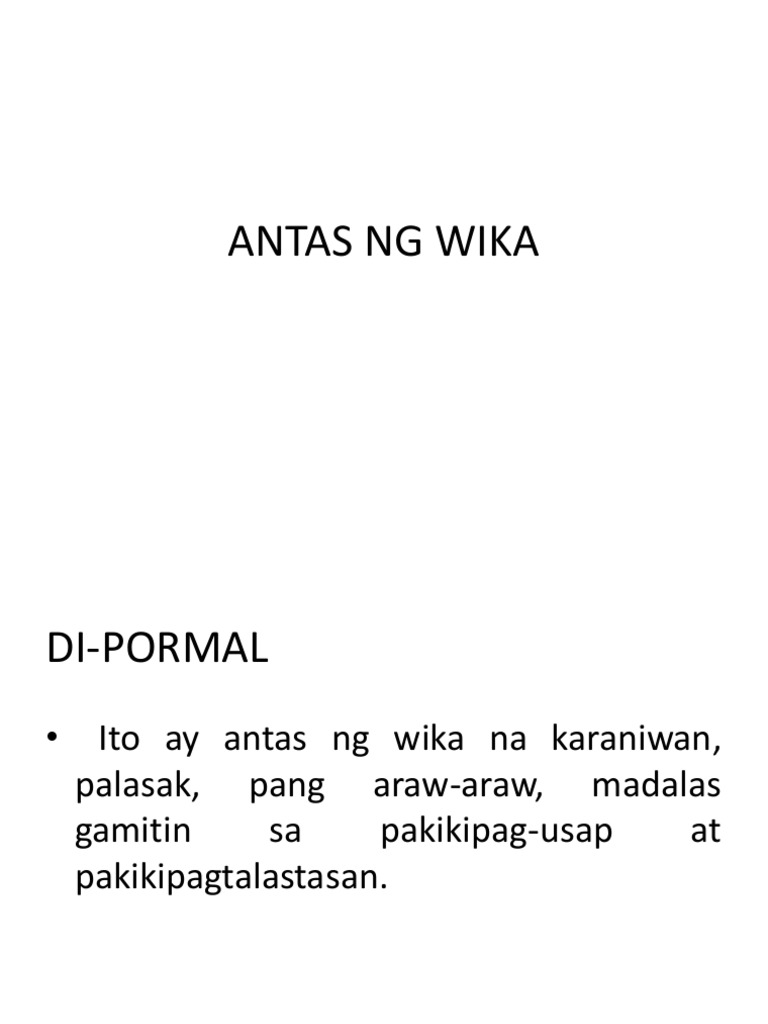 Balbal PORMAL NA ANTAS Mga salitang istandard dahil itoy kinikilala tinatanggap ginagamit ng karamihang nakapag-aral sa wika. Nakakapagpahayag ng may pagtitiwala sa sariliMga Pagbasa 1 Enero 2011 SabadoWika. Antas ng Wika Pormal Di-pormal.