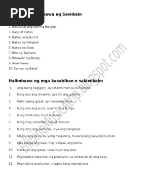 Mga Halimbawa Ng Sawikain Salawikain At Kasabihan Pdf