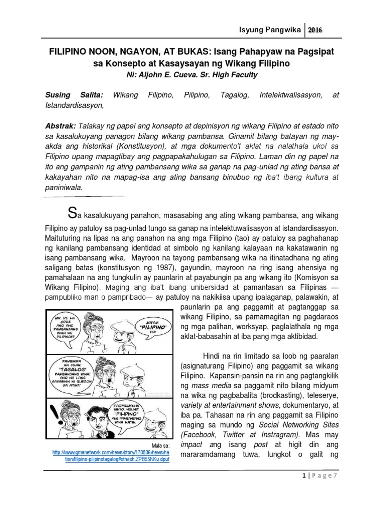 Pdf Ang Kalagayan Ng Intelektuwalisadong Wikang Filipino At Ang Istandardisasyon Nito Sintesis Kyle Jharry D Santos Academia Edu