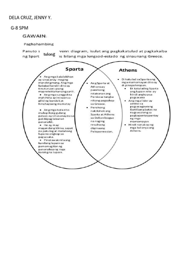 Solved Gamit Ang Venn Diagram Ilarawan Ang Pagkakaiba At Pagkakatulad Ng Athens At Sparta Course Hero
