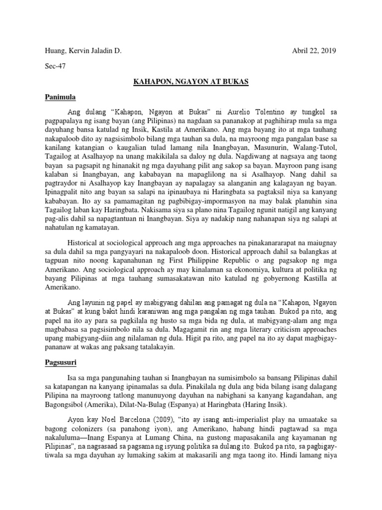 Sanaysay Dula Noon Hanggang Ngayon Ang Dula Ay Isang Uri Ng Akdang Pampanitikan Kung Saan Itang Studocu